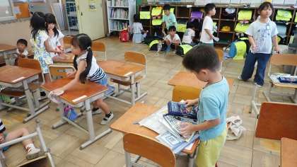 1年生の教室の前を通ると、教室の大掃除をがんばっていました。