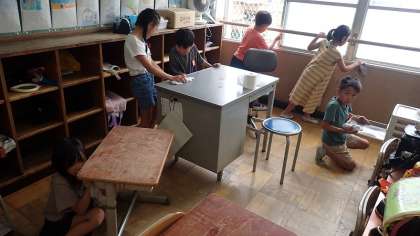 2年生は、教室や学年で使っていた場所の大掃除をがんばっています。普段はなかなか手が回らないところまで、しっかりがんばって掃除をしました。