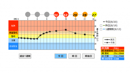 本日は京都市に熱中症警戒アラートが出されています。10:45時点での運動場における暑さ指数(WBGT)の実測値が31.1と【危険領域】に達したため、これ以降の運動場開放を中止します。