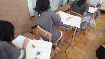5年生は、図工の「あの時 あの場所 わたしの思い」の作品づくりをしています。