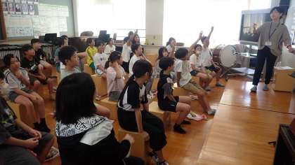 長調の3つの和音を聴き、和音について知るとともに、1度の和音、4度の和音、5度の和音の感じの違いを聴き取っていました。