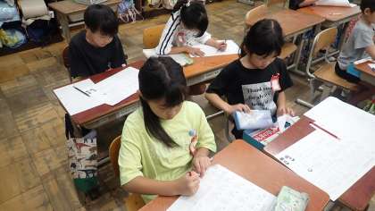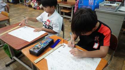 2年生は、算数の「たし算とひき算のひっさん」の学習をしています。くり上がりやくり下がりの計算の仕方に気を付けて、練習問題に取り組んでいました。