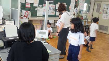 養護の先生と担任の先生に、身長と体重をはかってもらって記録します。「おっきくなってた?」と聞くと、「5cm伸びてたで!」とうれしそうに教えてくれた子がいました。いっぱい食べて、いっぱい体を動かして、ぐんぐんおっきくなってくださいね。