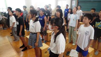 題材の学習と合わせて、11月の学童大音楽会で発表する歌の練習も始めました。歌詞と旋律を覚えて、正しい音程で歌えるようになることを、最初の目標にしています。よい表情で歌っている子どもたちの姿がたくさん見られました。