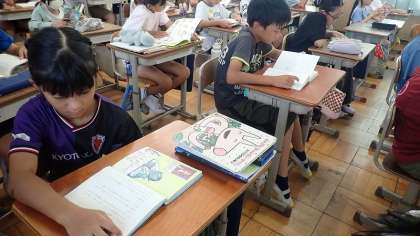 今日は、自分が紹介したい本をじっくり読み、本や作家の魅力について理解を深めていました。みんな、とても真剣な表情で読んでいました。