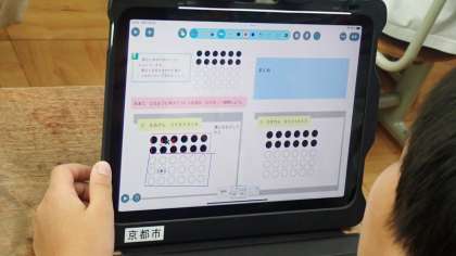 今日の学習では、「ロイロノート・スクール」を活用して学習を進めました。先生から配信してもらったノートの図に、考え方を書き込んでいきます。