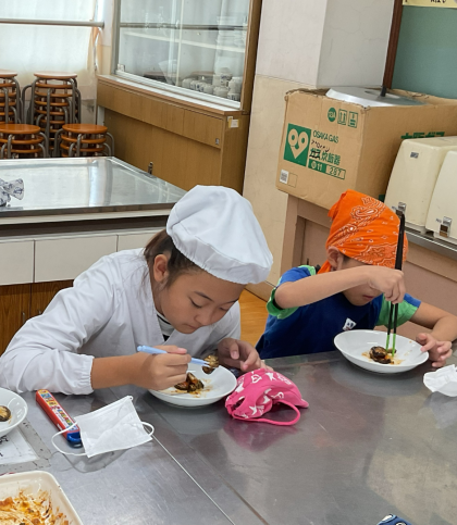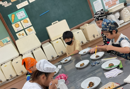 とれたての野菜は皮もやわらかく、香ばしい香りが広がる中、「おいしい!」「自分で育てた野菜は特別だね!」と笑顔いっぱいで味わっていました。野菜が苦手な児童も、友達と一緒に食べることでチャレンジする姿が見られ、食を通して協力や達成感、感謝の気持ちを感じることができました。