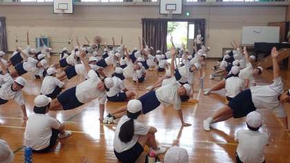 今日は、団体演技の技の練習に取り組みました。今日は、最も基本となる一人技の練習でした。練習を始めたばかりなのでまだまだうまくいかないところもたくさんあります。また、ひとつひとつの技はそれほど難しいものでなかったとしても、みんなで揃えて演技するというのはとても大変なことです。これからの練習でレベルアップしていく姿を見るのが楽しみです。