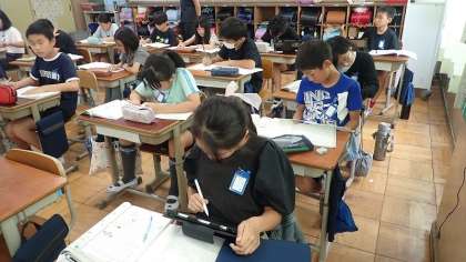 4年生は、算数の「2けたでわるわり算の筆算」の学習をしています。