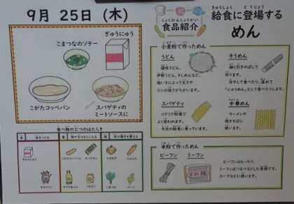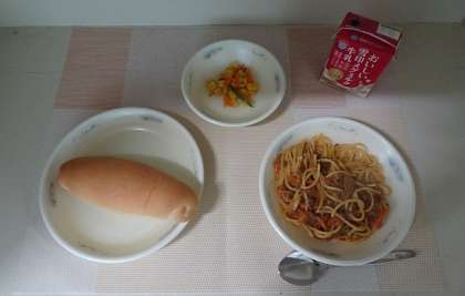 今日は、子どもたちに人気の「スパゲティのミートソース煮」です。牛ひき肉やたまねぎ、にんじん、トマトケチャップ、トマトピューレなどで作ってくださったミートソースは子どもたちの大好きな味付けで、たくさんあったスパゲティの食缶はあっという間に空っぽになりました。