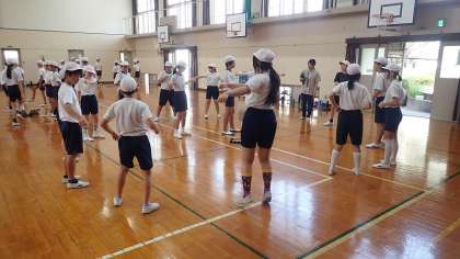 団体演技の中で、自分たちが1〜4年生の運動会の演技で使った曲の一部を使って踊るパートがあるそうです。今日は、担当するグループの中で踊りの練習をしました。懐かしい曲に自分たちで新たな振り付けを考えてみんなで踊ります。どんな演技になるか今から楽しみです。