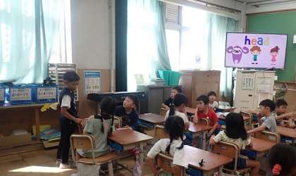 1年生は、英語活動の「えいごとなかよし」の学習をしています。