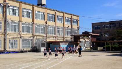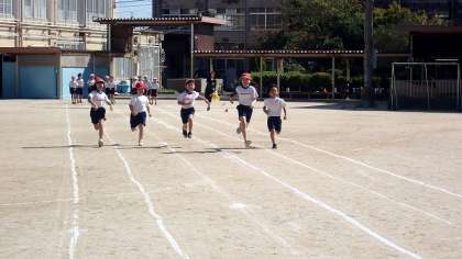 50m走と、団体演技の練習を行いました。今日はここ数日では暑さを感じる日になりましたが、子どもたちが50m先のゴールめざして力いっぱい駆け抜けました。団体演技では、音楽に乗ってノリノリで踊っています。