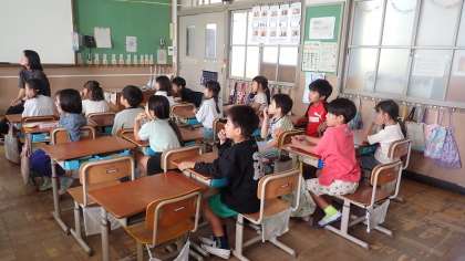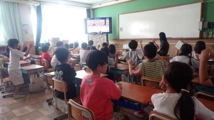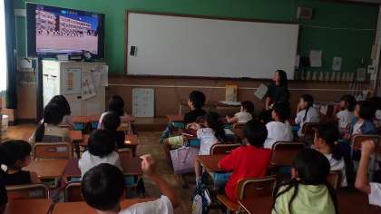 2年生は、運動会の団体演技の様子を撮影した動画をみんなで確認しています。