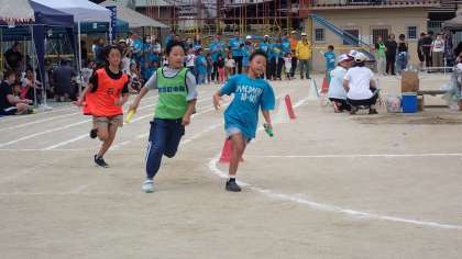 町内の名誉をかけて、8名の選手がバトンをつなぎます。小学生の子どもたちも活躍していました。