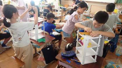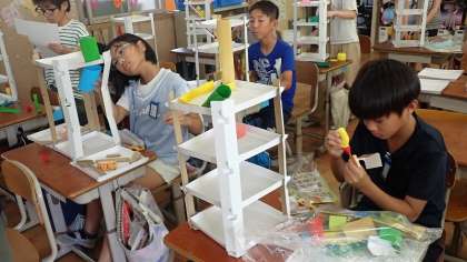 4年生は、図工の「コロコロガーレ」の学習をしています。