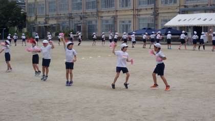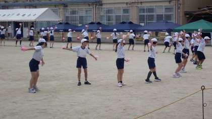 今日は雨が降ったり止んだりの天気になりましたが、雨の止み間に運動場で練習をすることができました。明日の本番に向けた練習は万全のようです。練習の成果を発揮してくれることを期待しています。
