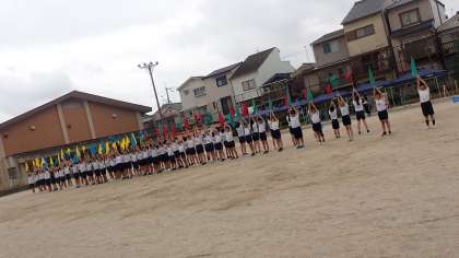 昨日最後のつもりで運動場での練習をしましたが、今日も雨の止み間に運動場で仕上げをすることができました。子どもたちの様子を見ていると、ほどよい緊張感で引き締まった表情です。明日は、青空のもと、すばらしい演技を披露してくれることと思います。期待しています!