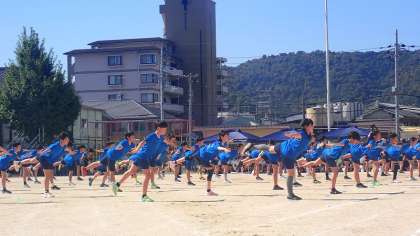 指先、足先まで気持ちを届かせ、全体の調和を意識して演技をする姿は大変立派な姿です。見ている子どもたちからも、自然と拍手が起こっていました。