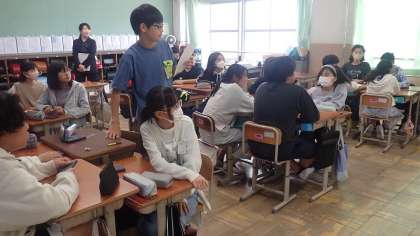 はじめに「税」の種類や役割についてのお話をしていただき、「税金で公共の図書館を建てる」という想定で1人1人がいくらずつ税金を出すとよいかを考えました。
