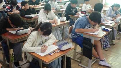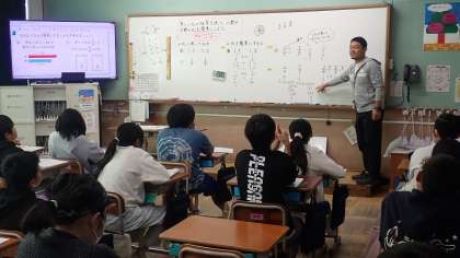 小数や分数を使って比を表し、それを簡単な整数の比にすることに取り組みました。小数や分数をいろいろな方法で整数の比に書き換えることに挑戦し、どの考え方が一番わかりやすいかを話し合いました。
