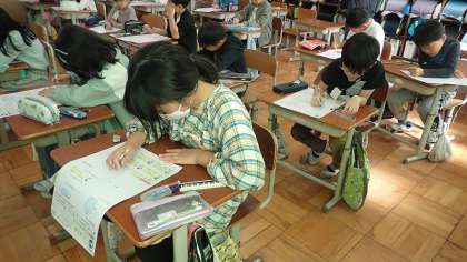 単元の学習で身に付けたことを生かしてテストに挑戦します。みんな真剣な表情です。うっかりまちがいをしないようにしっかり見直しもすることができたでしょうか。