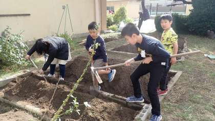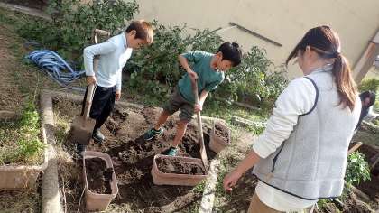 むくのき学級は、むくのきの畑を耕して、冬の野菜を植える準備をしています。