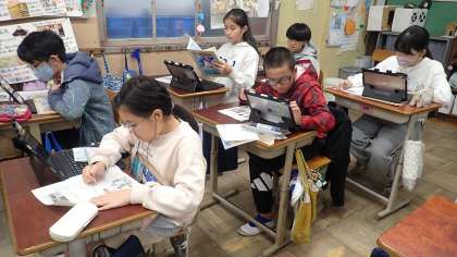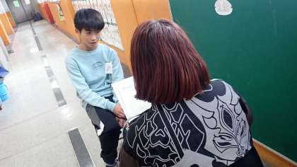 教室で順番を待っている間は、集中して課題に取り組んでいました。