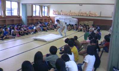 オリエンテーションで所員の方から,ふとんのしき方・たたみ方等を教えてもらいました。この後,荷物の整理や寝る準備をします。