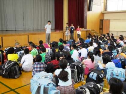 今日から,5年生が花脊山の家に向かって,長期宿泊学習に出発しました。