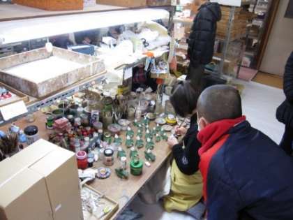 朝からクラス毎に土田人形さんに,京陶人形がどのように作られているのか見学に行きました。学校に帰ってきてから,京陶人形の絵付け体験をしました。かわいいお雛様を作りました。