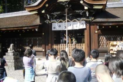 梅の宮大社や古い石碑や大きな木など,たくさんのものを見ました。