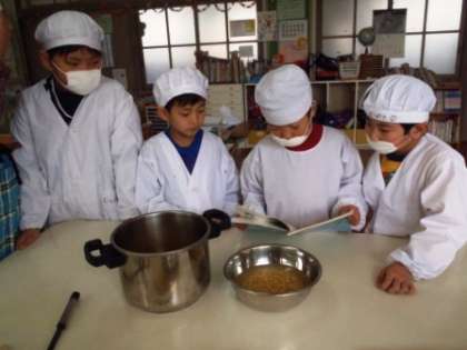 大豆の学習のしめくくりは,「とうふ」づくり。