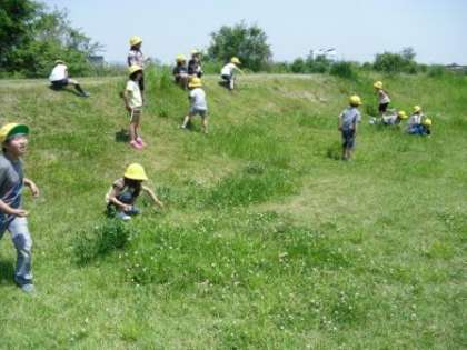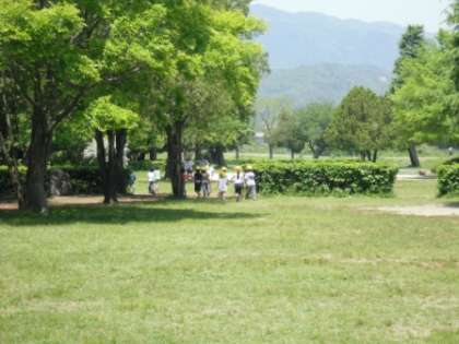嵐山東公園ではグループごとに4つのポイントを回るラリーをしました。お弁当の後は,遊んだりおやつを食べたり,楽しく過ごしました。