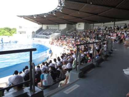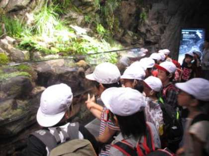 水族館ではたくさんの生き物と出会って,感動!イルカショーを見た後は,グループごとに見学しました。