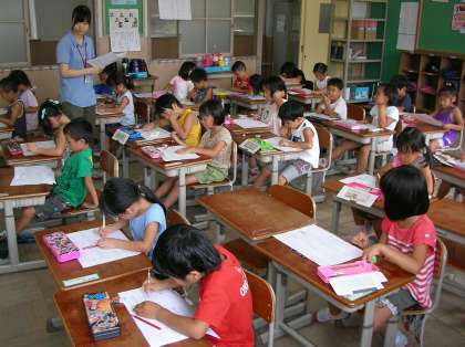 サマースクールの課題に一生懸命取り組む1年生たち