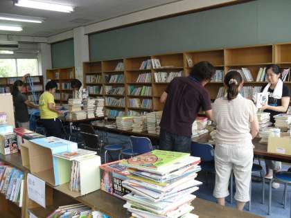 PTAの皆様のご協力を得て,図書館の本を整理しました。