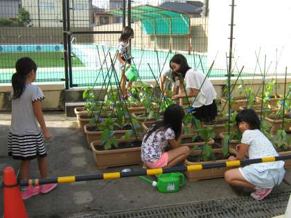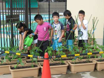 9月4日からピーマンの育成を始めました。今朝も朝から子ども達はがんばって水やりをしました。今日は天気もよく太陽の光をたっぷり浴びることだろうと思います。
