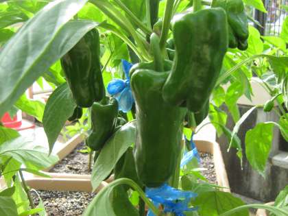 今にも食べられそうなくらい大きくなったピーマン!立派に育っています。