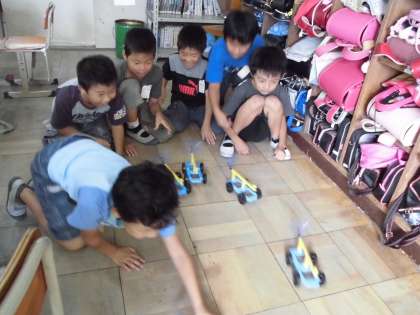 ゴムを使ったプロペラカーで,めいっぱい活動したあと,