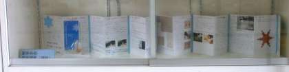 本館玄関のショーケースに,夏休みの理科の自由研究を展示しています。