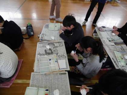 地域にある伝統工芸の工場を見学した後,実際に人形作りに挑戦しました。面相筆で細かなところを塗るのがとても大変でした。集中して丁寧に仕上げていきました。終わったら「持って帰っていいですか?」と出来栄えに満足そうでした。今日はひなまつりの日なのでとてもぴったりのお土産になりました。