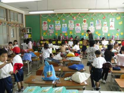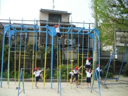 みんなで着替えて,服を自分でたたみました。運動場では元気に遊具で遊びました。