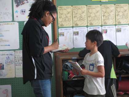 本場の英語を聞いた子どもたちは目を輝かせていました。