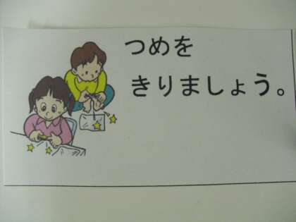 また、爪の検査もしています。長い爪は、けがのもとにもなります。爪の長い人には、「つめきりカード」を渡しています。1週間に一度曜日を決めて、爪を切る習慣をつけましょう。