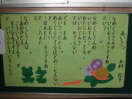 毎月,各学年の掲示板に詩を掲示しています。