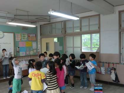 何人かのチームになって,音読発表会をしました。どこを読むのか,どの役をするのか,相談しながら決めています。自分たちで話し合って音読劇が作りあげることができるようになってきた姿を見て,嬉しくなりました。