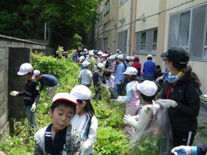 全校で,梅津小学校・梅津校区をきれいにする時間です。2年生は後者の北側の草根抜きをしました。ひっつき草がいっぱいありました。草抜きをしたら,とってもきれいになりました。みんな,暑い中ごくろうさまでした。