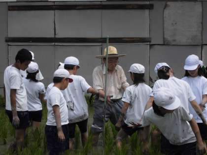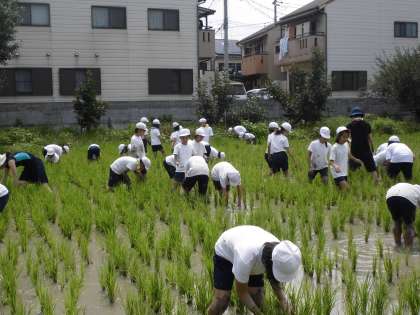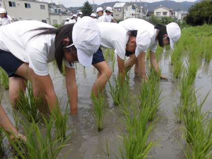 太陽の照りつける中,「毎日やっている農家の人は,大変やなぁ。」との声も。