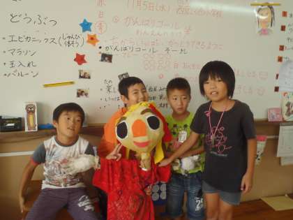 むくのき学級も,みんなで案山子を作り,5年生と一緒に